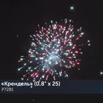 1. Множество золотых ниспадающих нитей (парча) и красные звезды. 2. Краснобелая мерцающая сфера (пион). 3. Множество золотых ниспадающих нитей (парча) и синие звезды. 4. Красно-зеленая мерцающая сфера (пион). 5. Красочная концовка. ЗАЛП: Зеленофиолетовая сфера (пион) и облако треска (трещащий дождь).